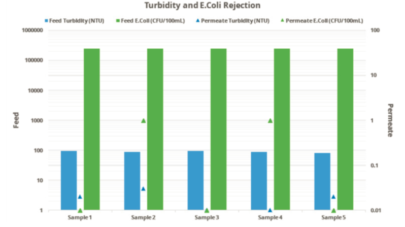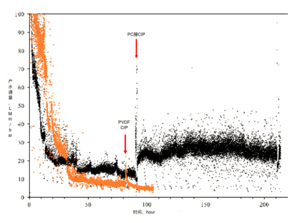 - WaterPro PC膜與市場上PVDF(100kDa MWCO)超濾膜比較WaterPro PC膜卷式組件可獲得:
